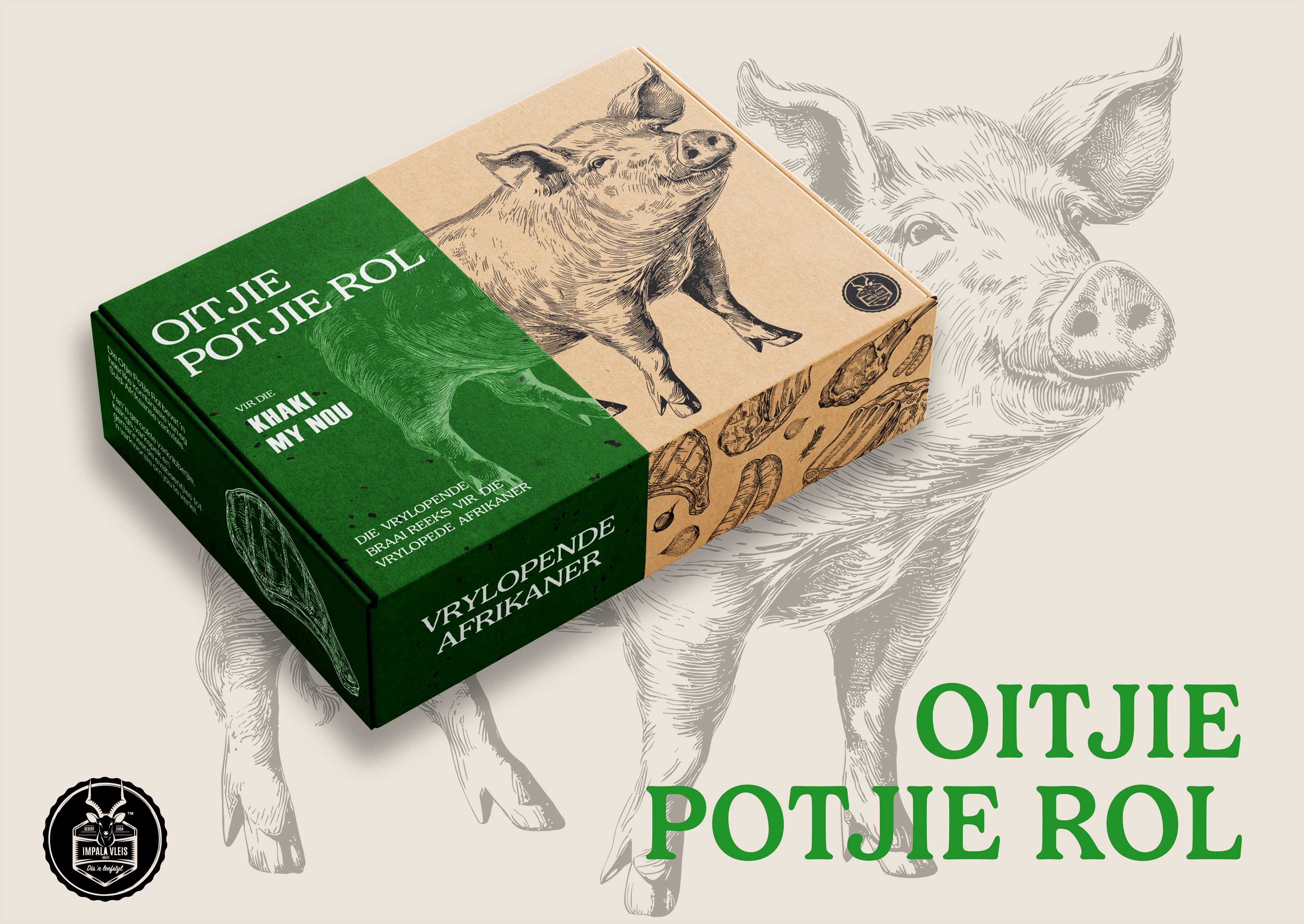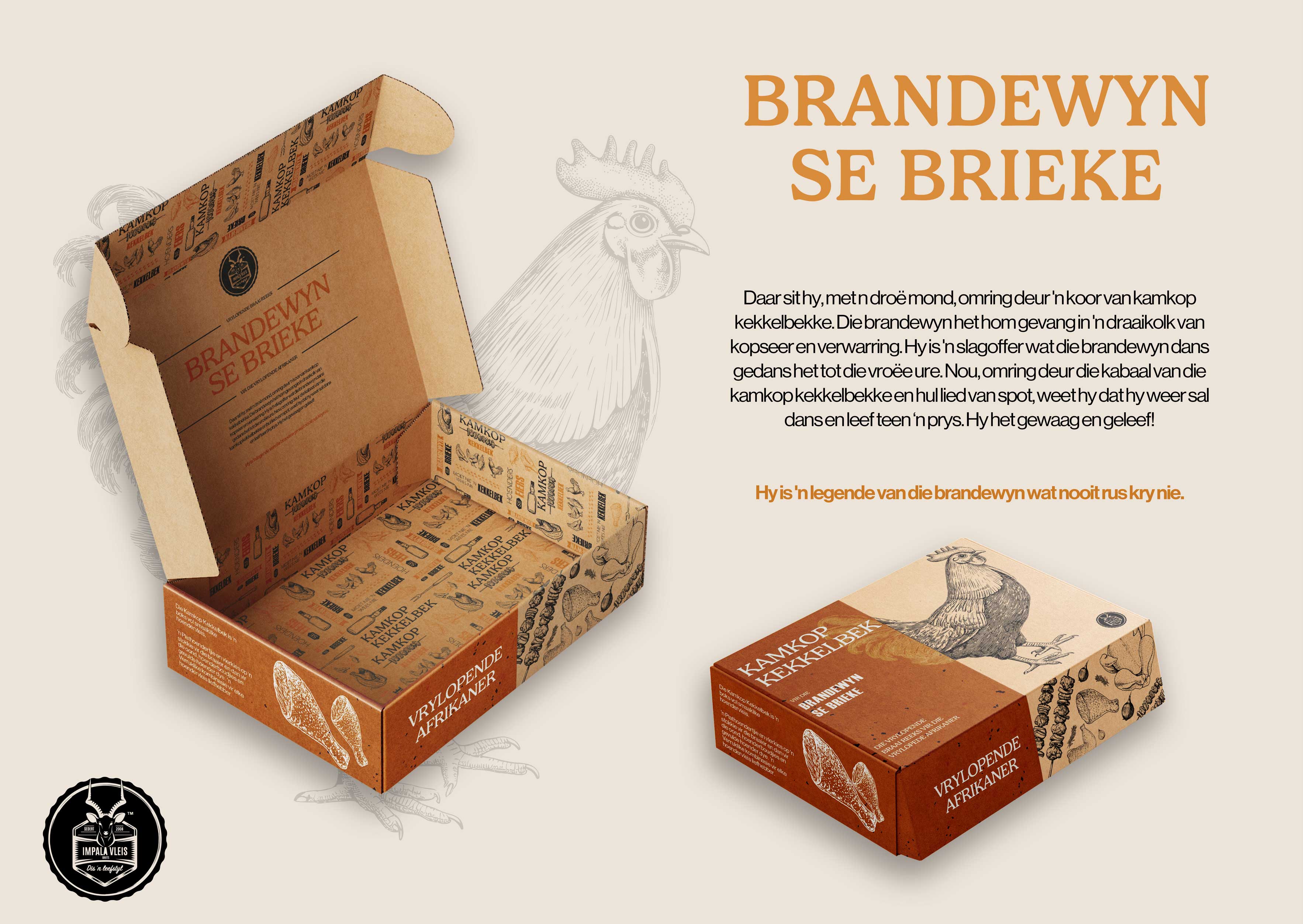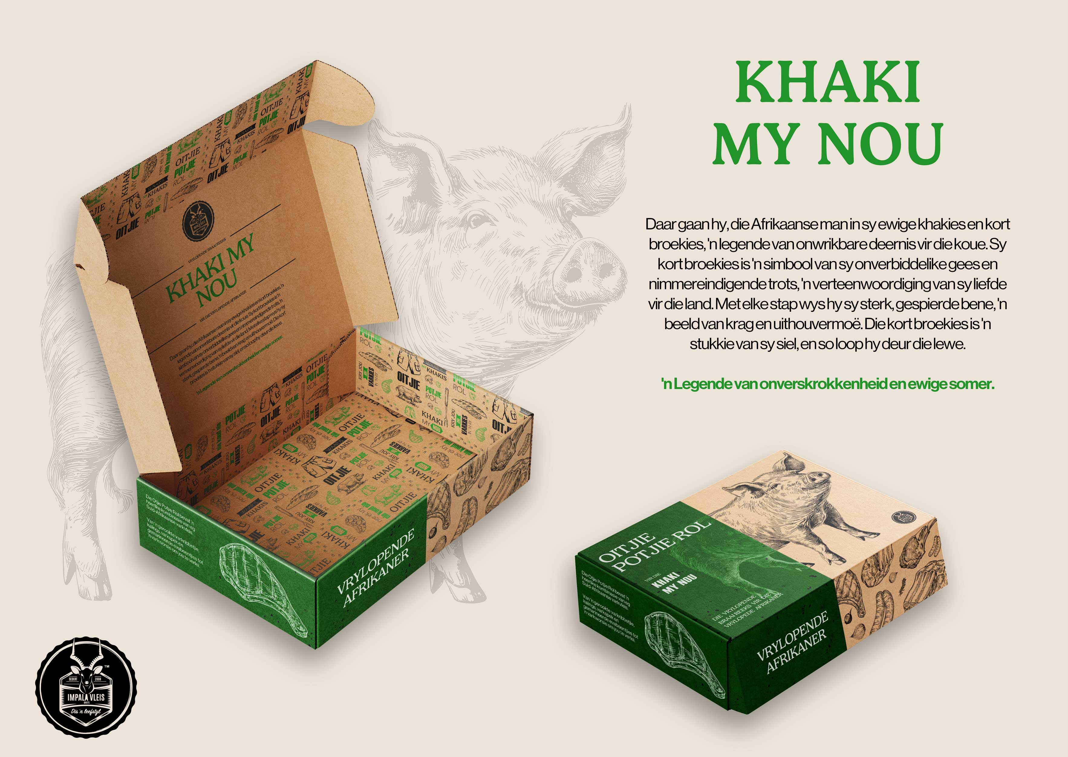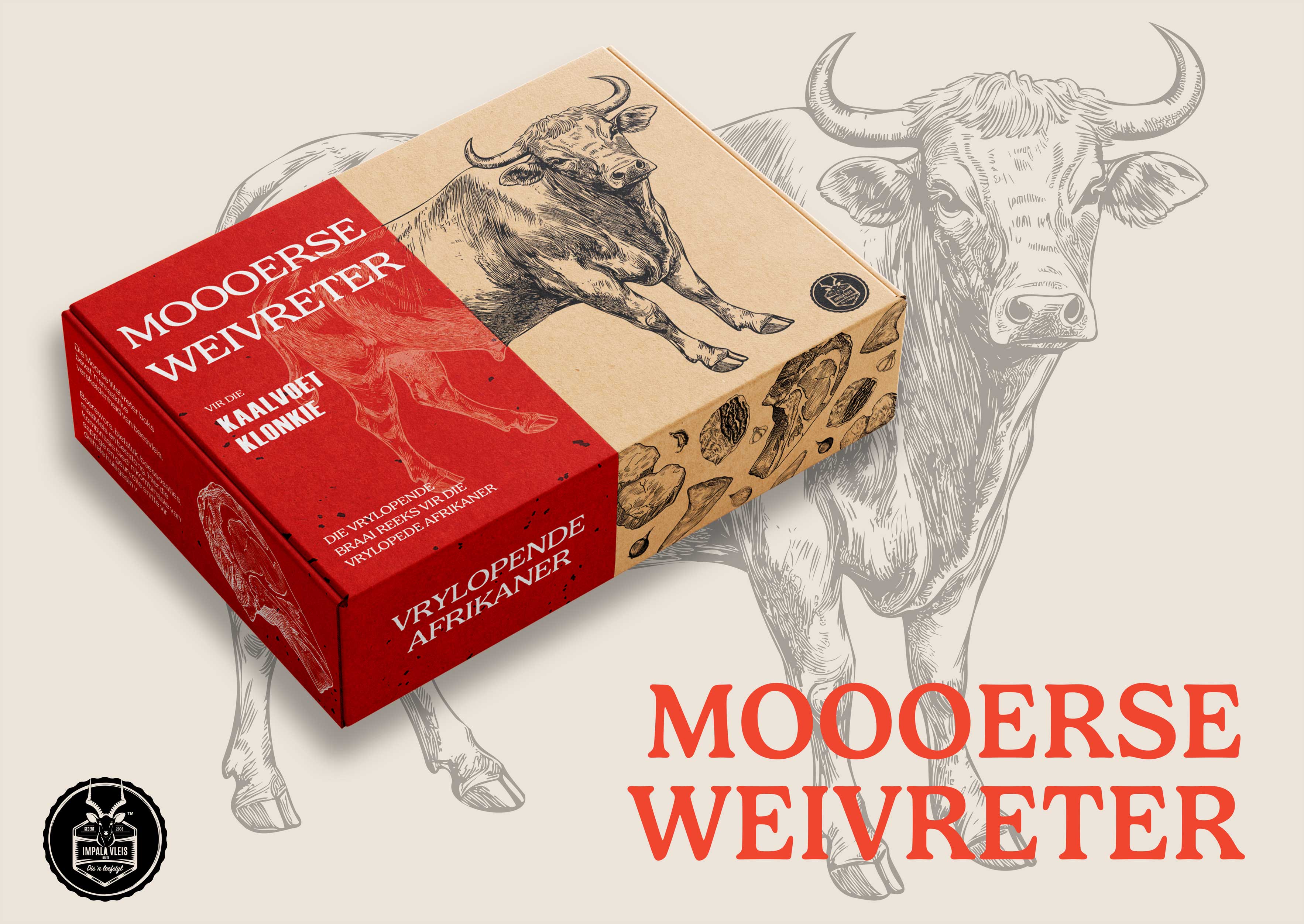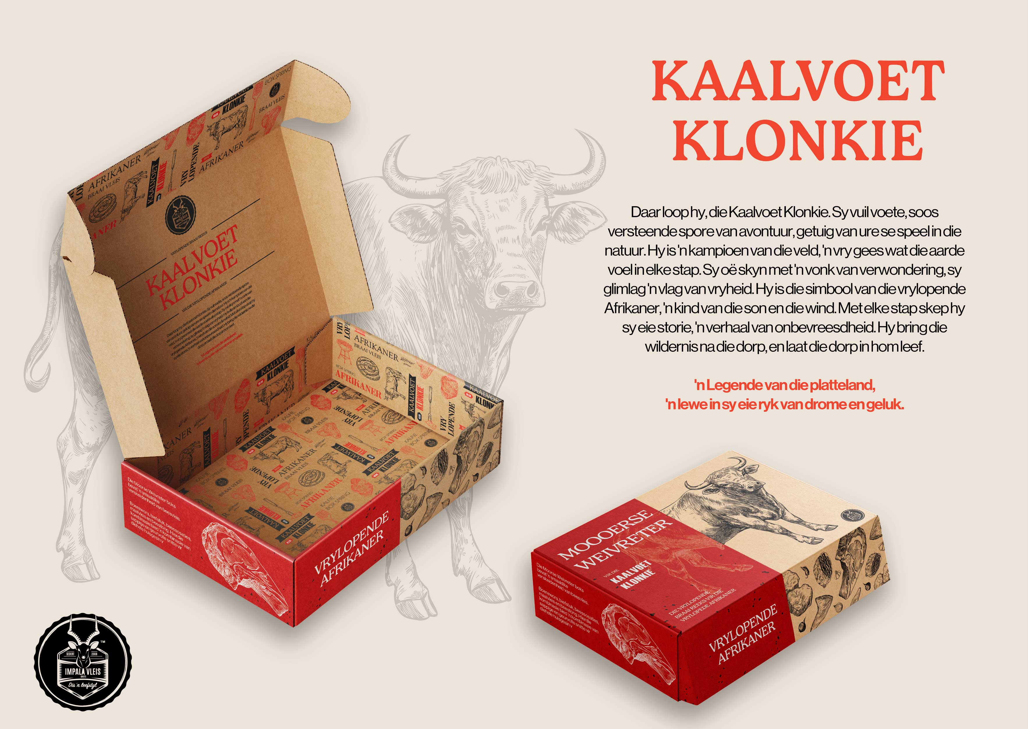 Die Vrylopende Afrikaner is a packaging campaign celebrating the carefree, loving spirit of Afrikaans people. Inspired by the idea of being 'free-range', like the meat sold to them, it redesigns Impala meat's packaging, honouring and embracing Afrikaans culture's rich heritage with creativity and respect.